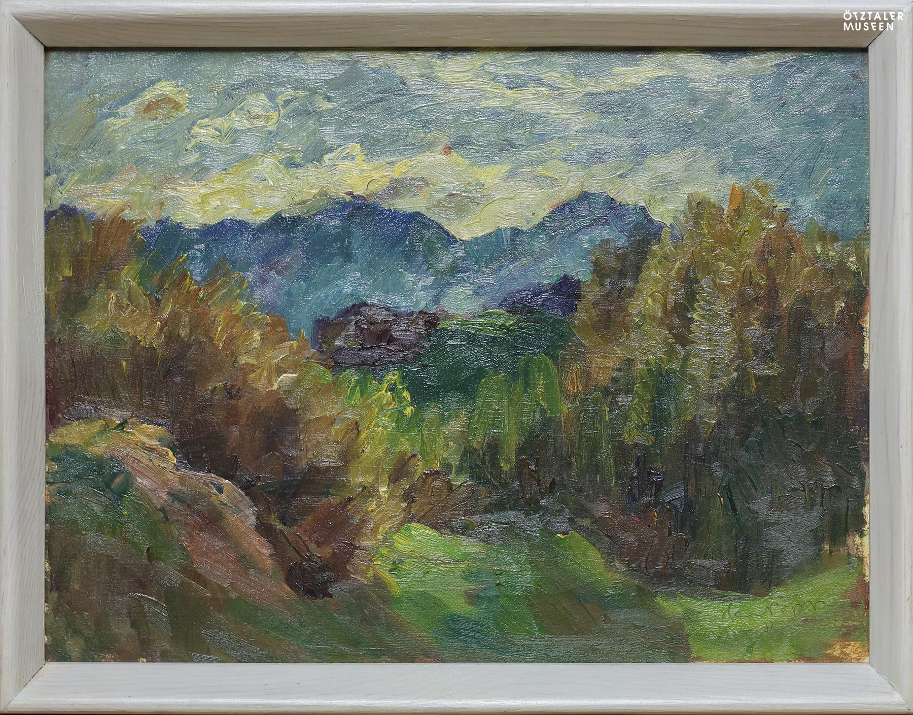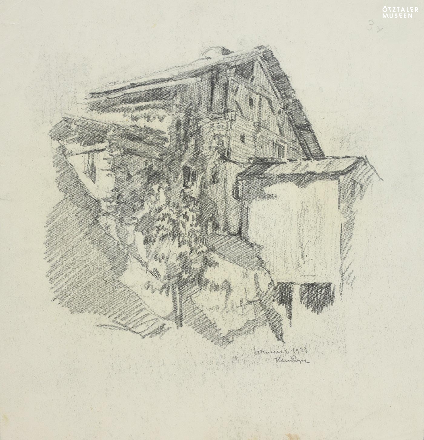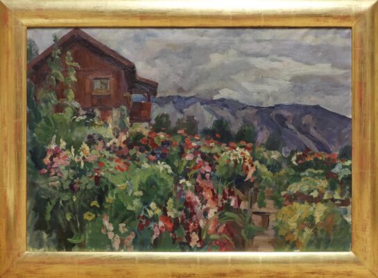 Der Maler widmet sich hier seiner temporären Unterkunft in Piburg mitsamt dem üppigen Blumengarten.