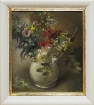 Beispiel für eines der vielen leicht abstrahierten Blumenstillleben in einer Vase aus dem Oeuvre des Künstlers.