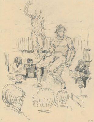 Aktstudie mit mehreren Zeichnern, vermutlich aus seiner Zeit an der Wiener Akademie.