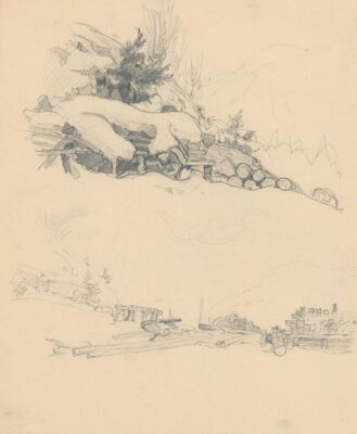 Eines von mehreren Beispielen in denen Hans Popp Skizzen zum Thema Holz, oder Holzarbeiten anfertigte.
