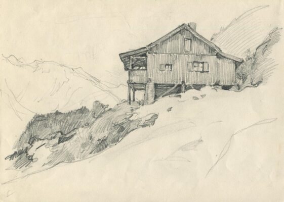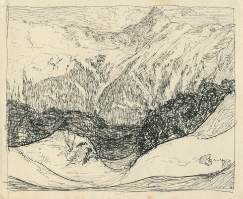 Noch abstrakter und experimenteller wirkt diese Tuschezeichnung des Acherkogels.