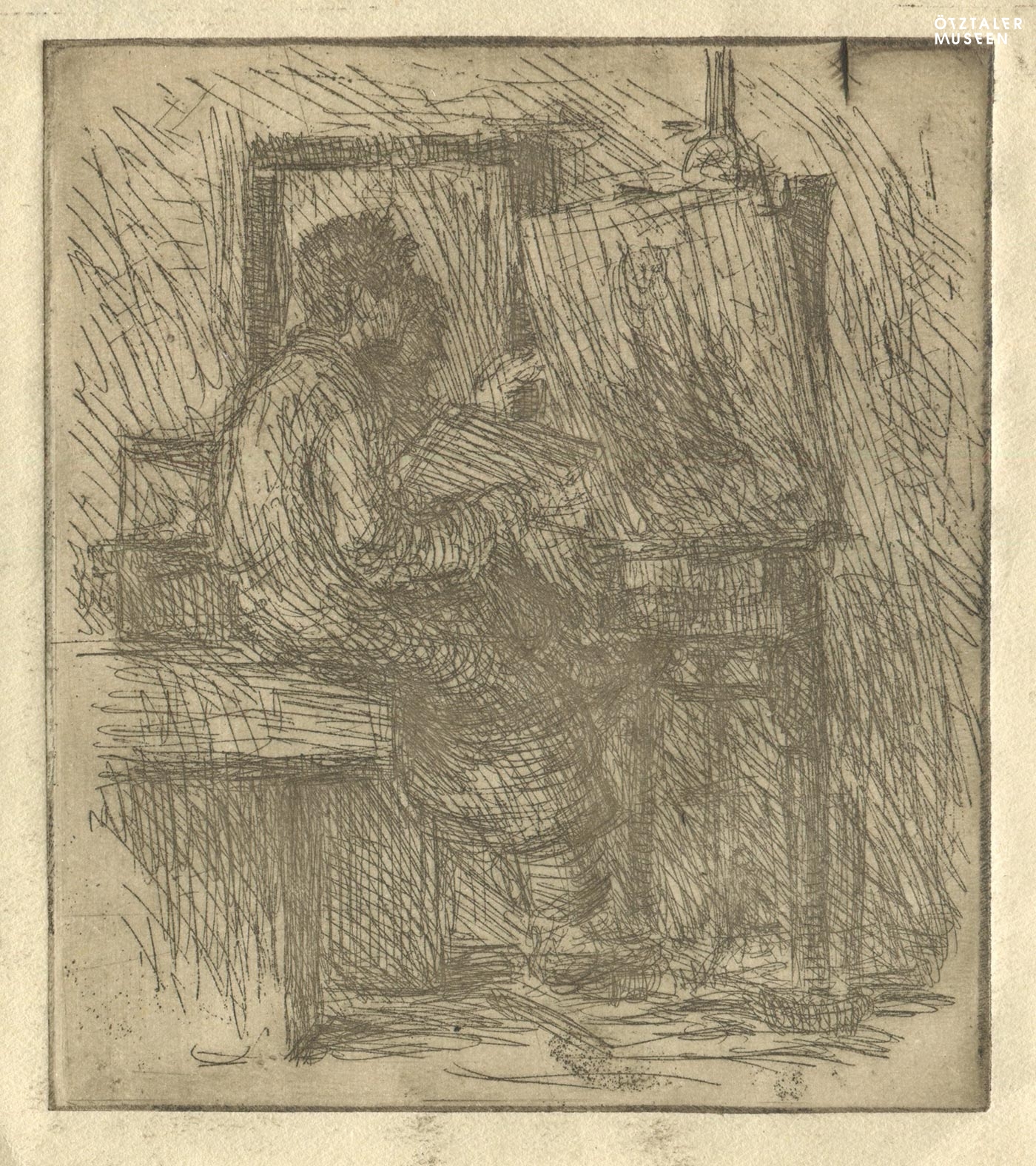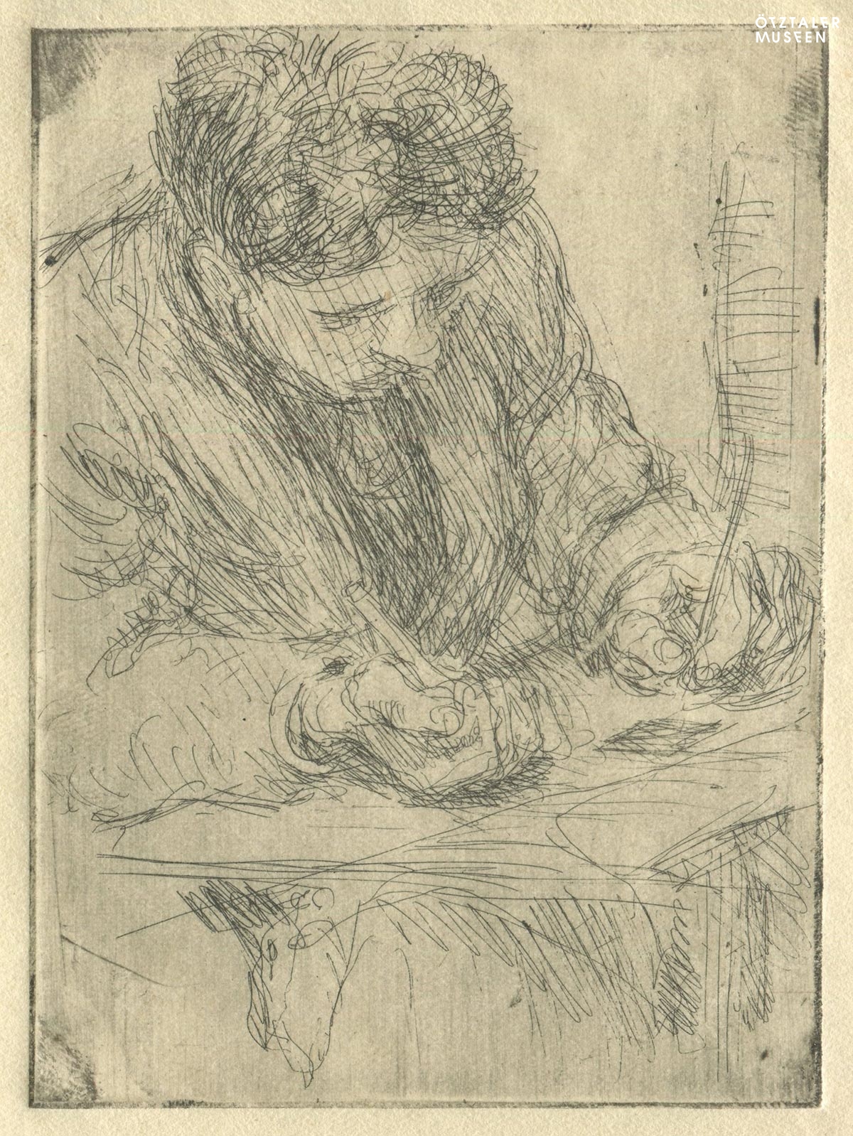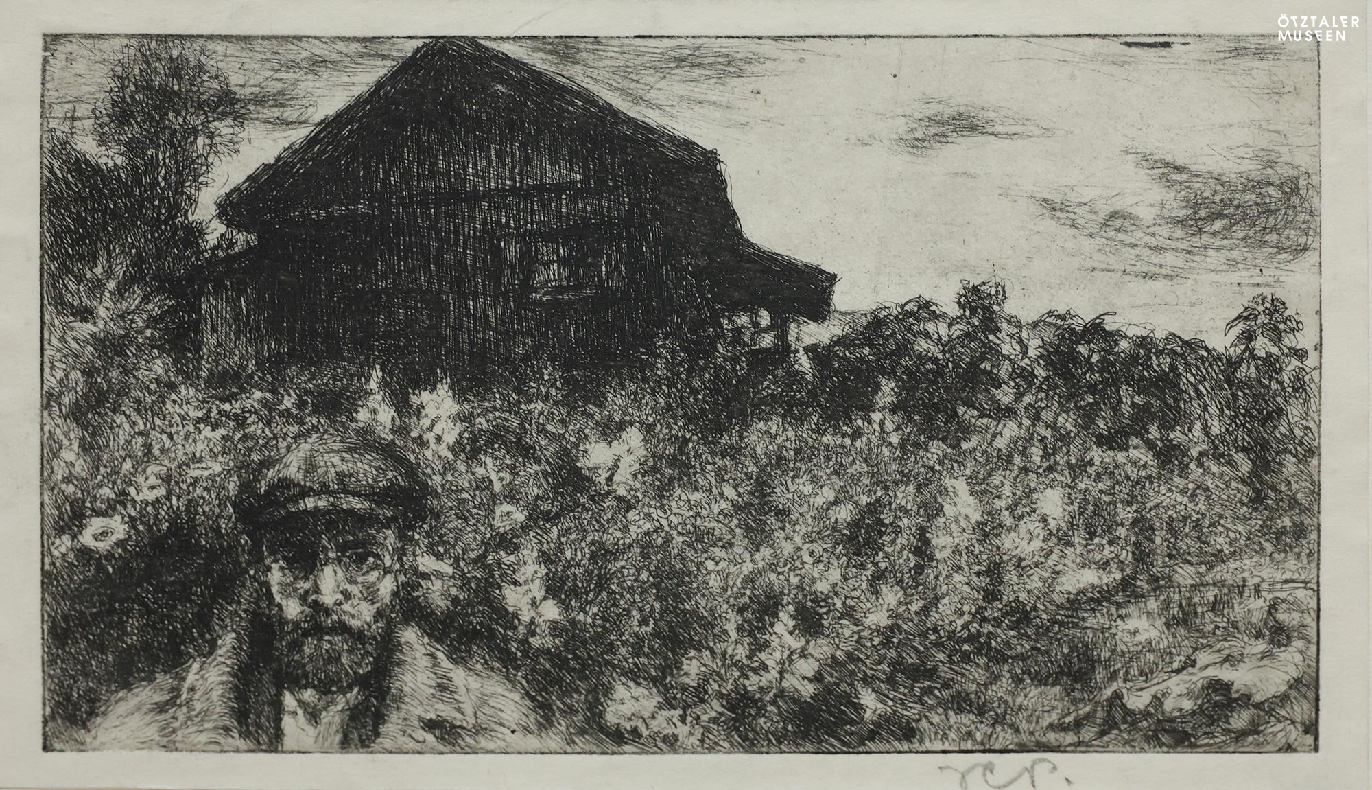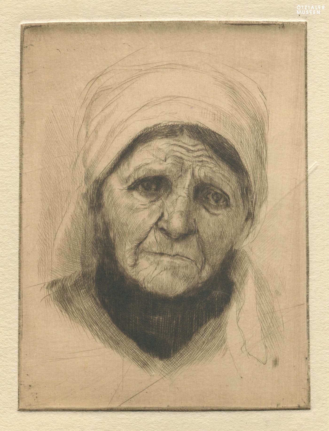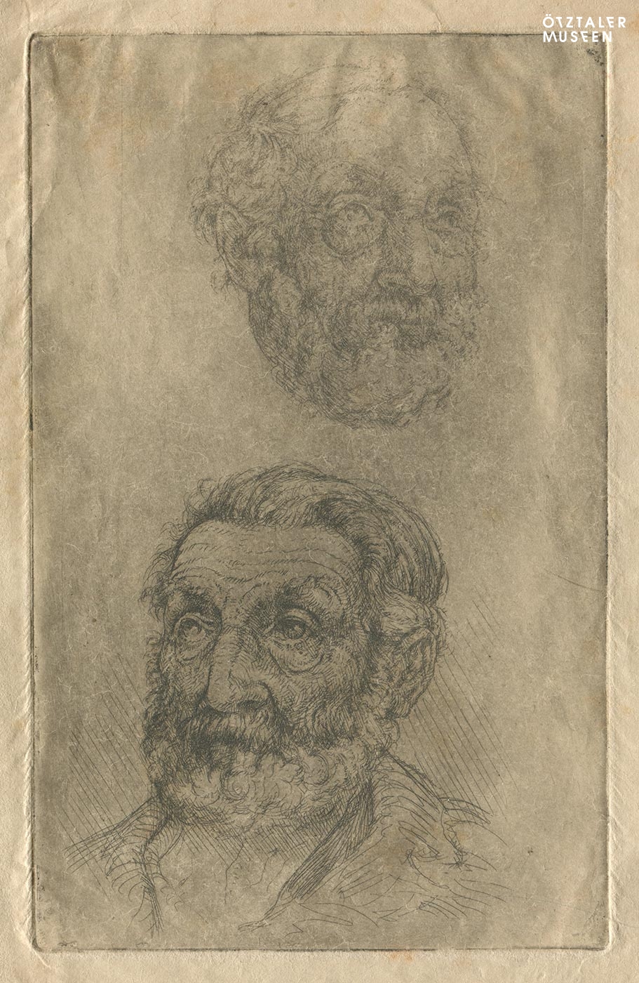 Druckgraphische Studien für das Porträt des alten Mannes, vermutlich wiederum der Wirt des Gasthofs Piburger See.
