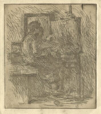 Dieses Werk zeigt einen jungen Künstler, der mit einer Radiernadel arbeitet. Ob es sich dabei um ein Selbstporträt handeln könnte, ist unklar.