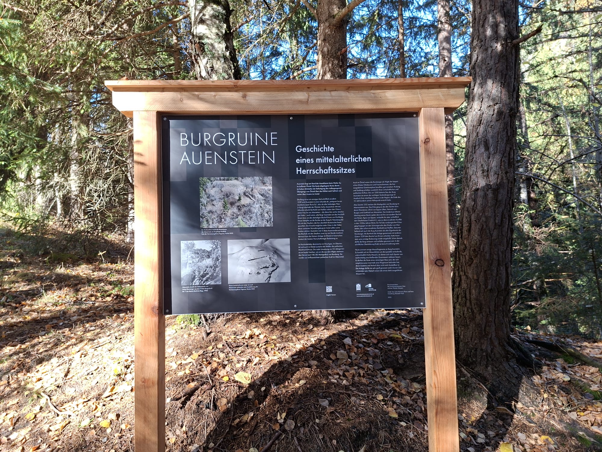 Der Turmmuseumsverein Oetz hat sich in den vergangenen Jahren intensiv um den Erhalt der Ruine Auenstein bemüht. Die Grundmauern sind stark erodiert und der Ort lief Gefahr, in Vergessenheit zu geraten. Das Museumsvereins-Team um Christian Nösig präsentierte nun eine neue Tafel, um den Ort sichtbar zu halten.